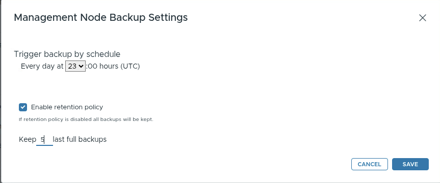 In addition, configure all vCenters with backup (as always, using vCenter Server Management, default port 5480 – https://vcenter-address:5480/#ui/backup)