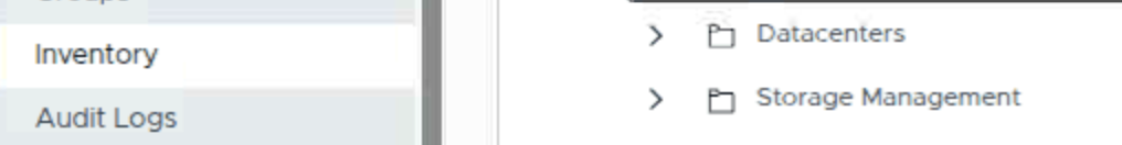 5. Under Administration -> Inventory, select vCenter and verify if Datacenters folder is visible